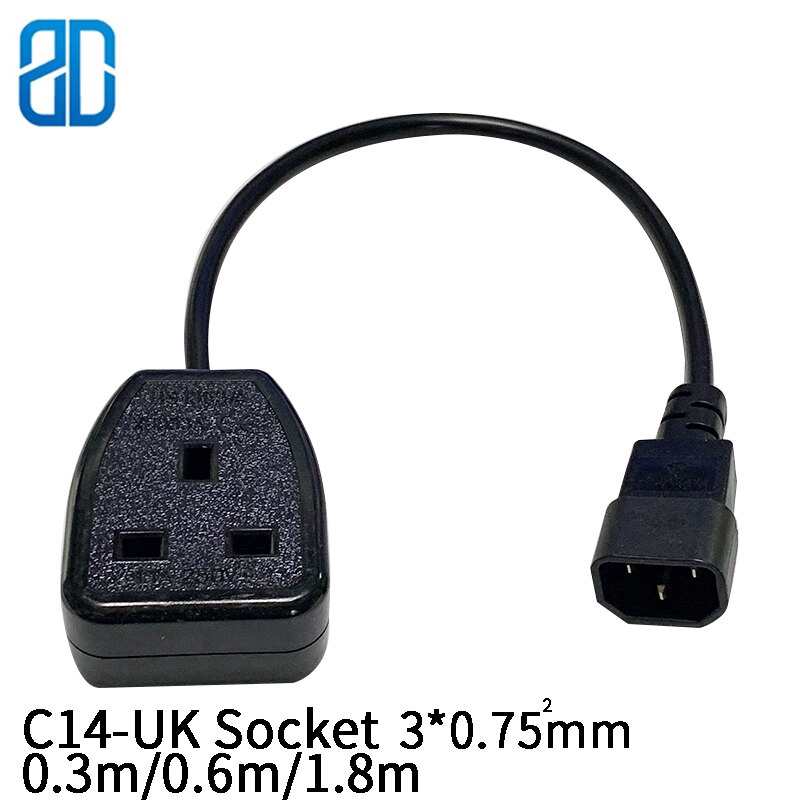 Iec C14 Male Plug To Uk 3pin Female Socket Power Adapter Cable Connect C13 Pdu Ups Extension Cord For Singapore Malaysia Hk 0 3m 0 5m 2 5m 3x0 75mm Lazada